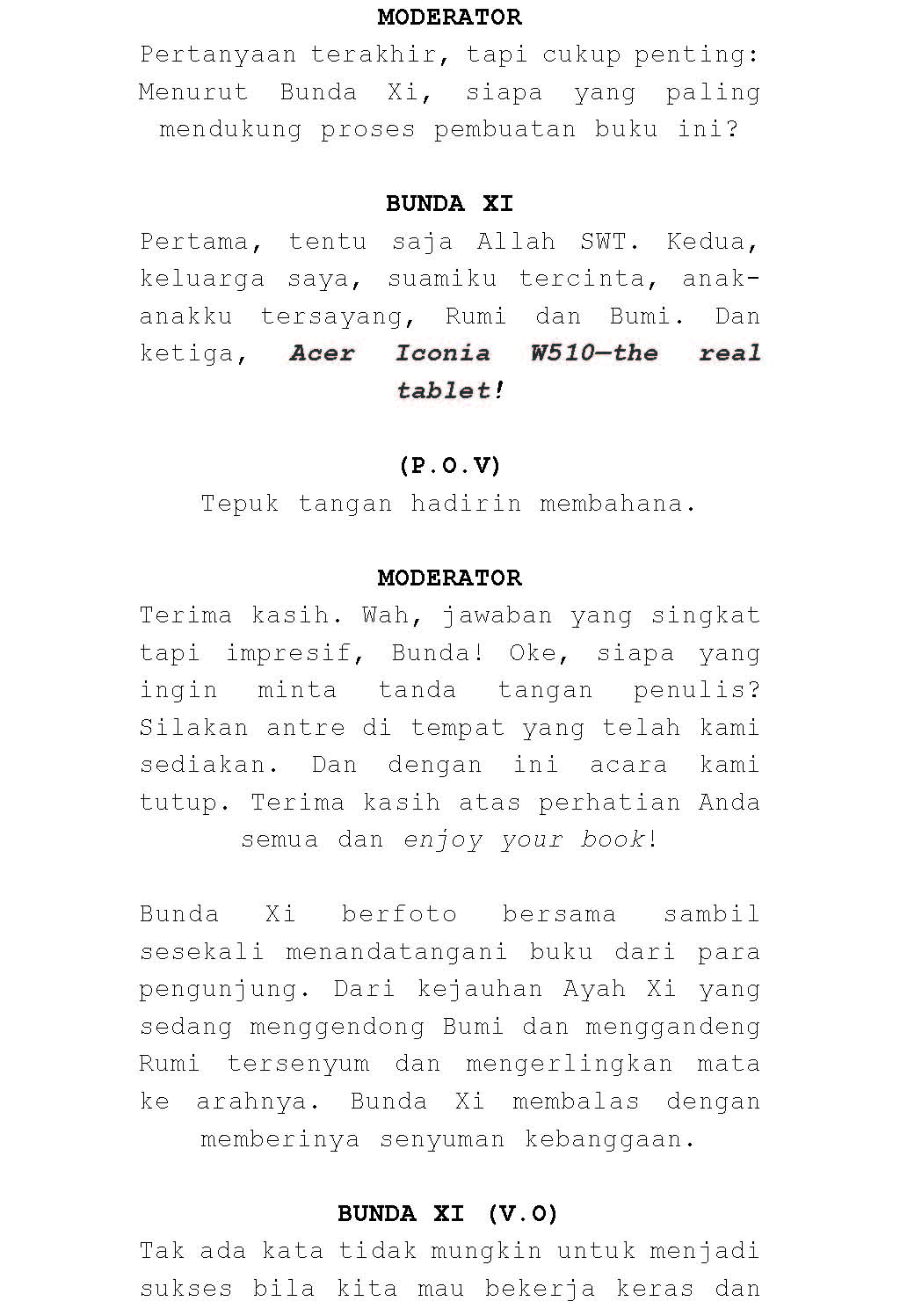 Hasyaaah, kebiasaan deh, kalau buat artikel pasti panjang2. Tapi keren deh idenya. Udah bisa buat script sinetron nih kayaknya. Sekalian mengorbitkan Rumi dan Bumi juga bunda para Xi.