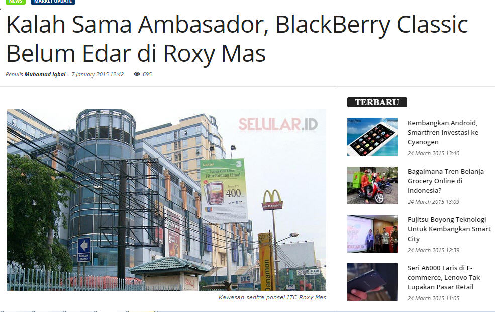 “Kalah Sama Mal Ambassador, Roxy Mas Belum Disambangi Blackberry Classic.”
