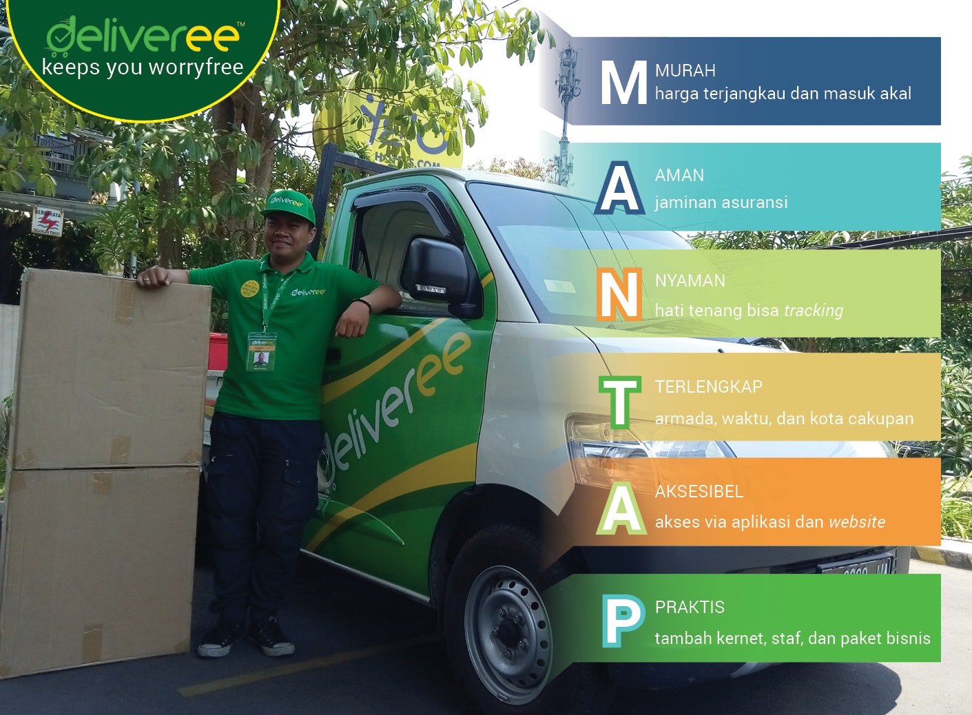 - Varian armada beragam; selama ini sudah ada ojek online yang bisa melayani jasa delivery, namun armadanya terbatas yakni motor dan mobil box. Nah, keunggulan Deliveree adalah menghadirkan aneka kendaraan mulai dari mobil kecil kelas ekonomi hingga truk FUSO yang superbesar. Pelanggan tinggal pilih sesuai kebutuhan. Untuk dalam kota engkel box dan mobil ekonomi sudah mumpuni, sedangkan pindahan atau kirim paket bisnis tentu saja butuh truk besar agar lebih hemat—apalagi Deliveree menawarkan FTL alias full truck loaded yang memungkinkan kita mengirim satu truk penuh dengan harga tetap all-in. Artinya tidak ada biaya tersembunyi. Harga sudah termasuk sewa truk, pengemudi, BBM, tol, parkir, dan gratis layanan kurir untuk pengembalian dokumen ke kantor kita.
