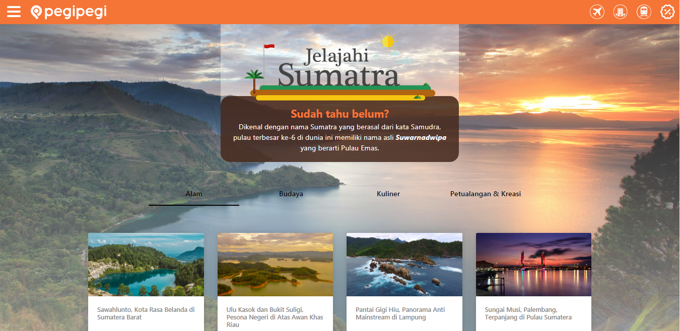 Bepergian ke luar daerah kini memang semakin mudah. Menikmati keindahan alam atau keunikan wisata kuliner di daerah asalnya tinggal melewati serangkaian klik untuk bisa sampai ke sana. Tiket pesawat murah banyak tersedia, salah satunya di situs pegipegi yang menampilkan pilihan harga terbaik sesuai prefernsi kita. Dengan mengusung program Jelajahi Indonesia, kita bisa dengan gampang menyeleksi wilayah yang akan kita kunjungi lalu pegipegi akan menawarkan opsi destinasi terbaik untuk kita.
