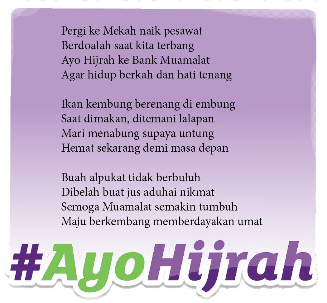 Tren minat kepada pengelolaan uang secara syariah terus meningkat di berbagai negara, bahkan di Inggris—juga di negara jiran. Nonmuslim juga dikabarkan turut beralih ke keuangan syariah. Sungguh sayang jika Bank Muamalat sebagai pionir bank syariah di Indonesia tidak kita manfaatkan potensinya. Berdasarkan pengalaman pahit saya terkena denda tinggi akibat terlambat mencicil, saya pribadi berharap agar #AyoHijrah mampu menjadi energi positif yang tidak hanya mendongkrak ekonomi nasional tetapi juga mendorong diterapkannya prinsip-prinsip Islam secara menyeluruh sehingga Indonesia yang mayoritas muslim bisa aman dan sejahtera.