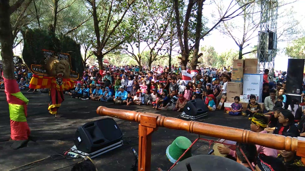 Jathilan aka jaran kepang also made the crowd cheer in delight. The masters of ceremonies have found it difficult to keep the spectators at an ideal distance from the main stage. A variety of cultural arts we can watch at the festival has seemed to be effective in driving heterogeneous people to blend and mingle with one another in total enjoyment without any social partition. When a group of kids from Barisan Seni Tari Muda Ambulu performed a modern dance in agility, the crowd as well as the regent was mesmerized.