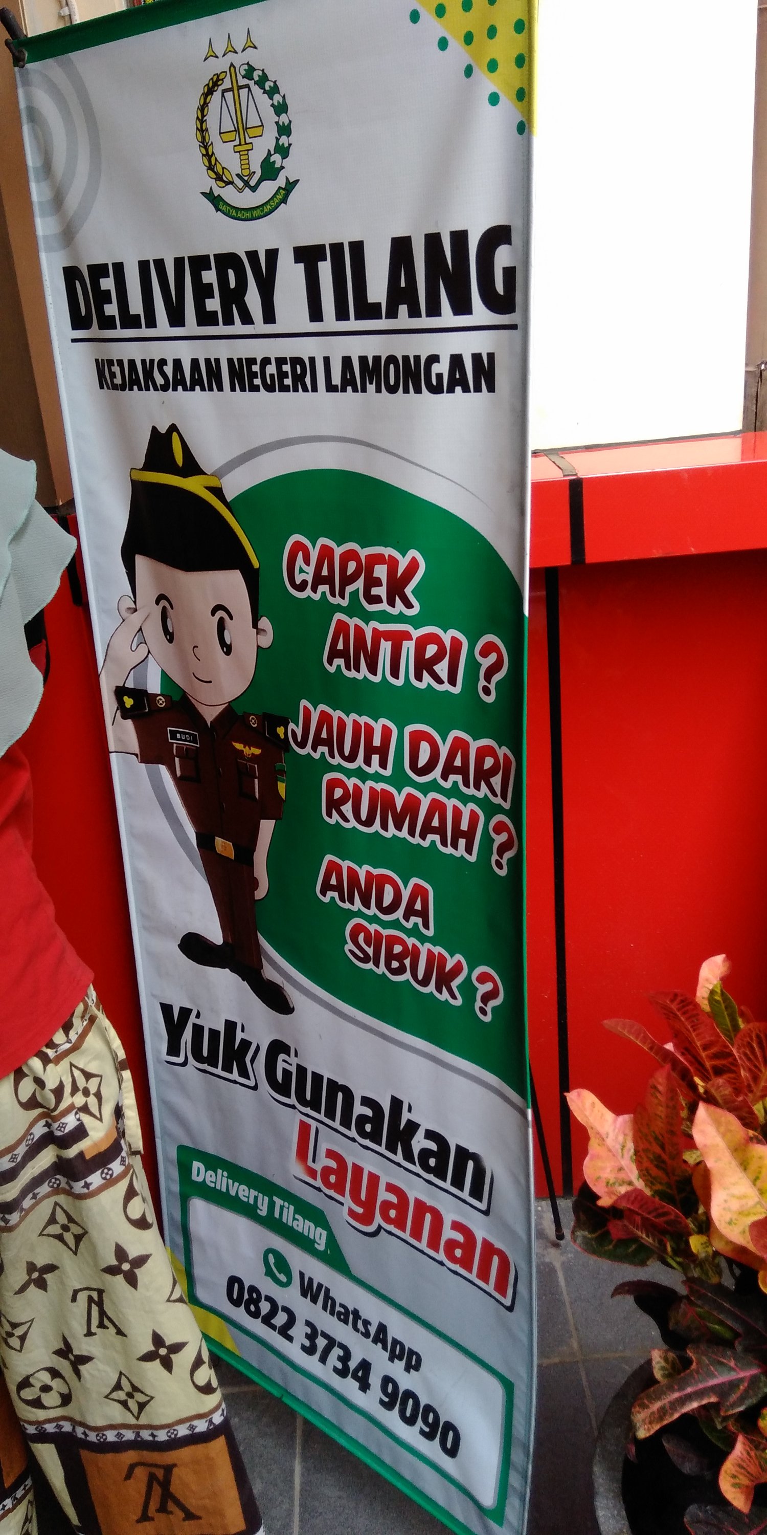 Rupanya saya salah. Bukti tilang berupa STNK bukan ada di pengadilan negeri sebagaimana petunjuk polantas, melainkan tersedia di Kejaksaan Negeri. Untunglah lokasi berdekatan di Jalan Veteran Lamongan, jadi enggak boros waktu. Segera saya parkir motor di depan dan langsung menuju satpam untuk menunjukkan surat tilang. Sebagai gantinya, saya mendapatkan nomor antrean.