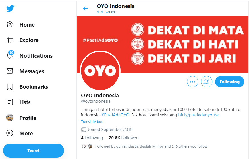 Jangan ragu lagi, segera kepoin akun Twitter dan IG OYO buat mendapatkan banyak informasi seputar liburan dan tentu saja penginapan. Langsung follow deh biar update terus seputar promo atau kuis asyik di sana. Mau?