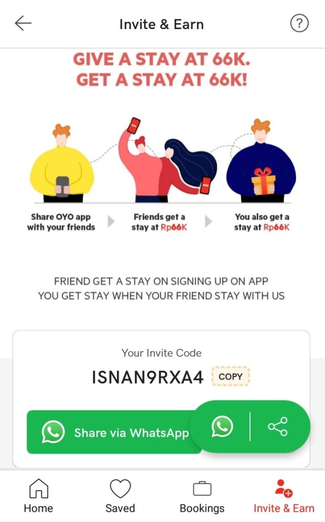 Apalagi kini cukup dengan memberikan kode referral kepada teman, kita berpeluang mendapatkan kamar seharga 66 ribu rupiah. Baik pemberi maupun penerima kode yang telah menginstal aplikasi OYO di smartphone. Keren banget kan promonya? Masih enggan berlibur? Cuss deh menginap di OYO Rooms dengan banyak pilihan dan fasilitas. Yuk bangun bonding agar cinta anak-anak terkoneksi dengan kita, berkat bantuan OYO yang mengerti kebutuhan kita terhadap penginapan yang ideal.