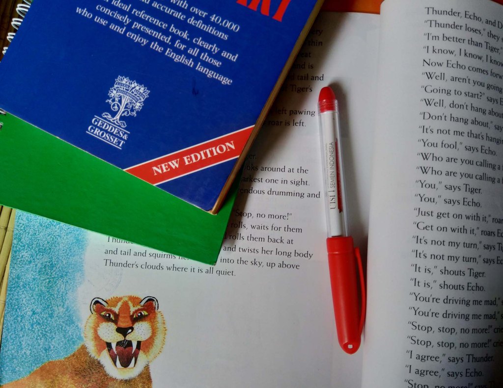 Saya pernah menjumpai buku bahasa Inggris untuk SMP yang dipakai di sebuah sekolah internasional bertuliskan ‘Indonesia Edition’ pada sampul depan. Di halaman isinya gambar/foto dan materi mengadopsi muatan khas Indonesia sehingga anak-anak yang belajar langsung punya keterikatan sesuai dengan pengalaman mereka sehari-hari. Misalnya foto pasar tradisional yang menunjukkan komoditas cabai keriting merah. Penyajian muatan lokal seperti ini menjadi nilai plus karena pelajar Indonesia mudah membangun relasi dengan teks bacaan atau materi apa pun yang ditampilkan dibanding materi yang melulu asing yang tak pernah mereka lihat langsung.