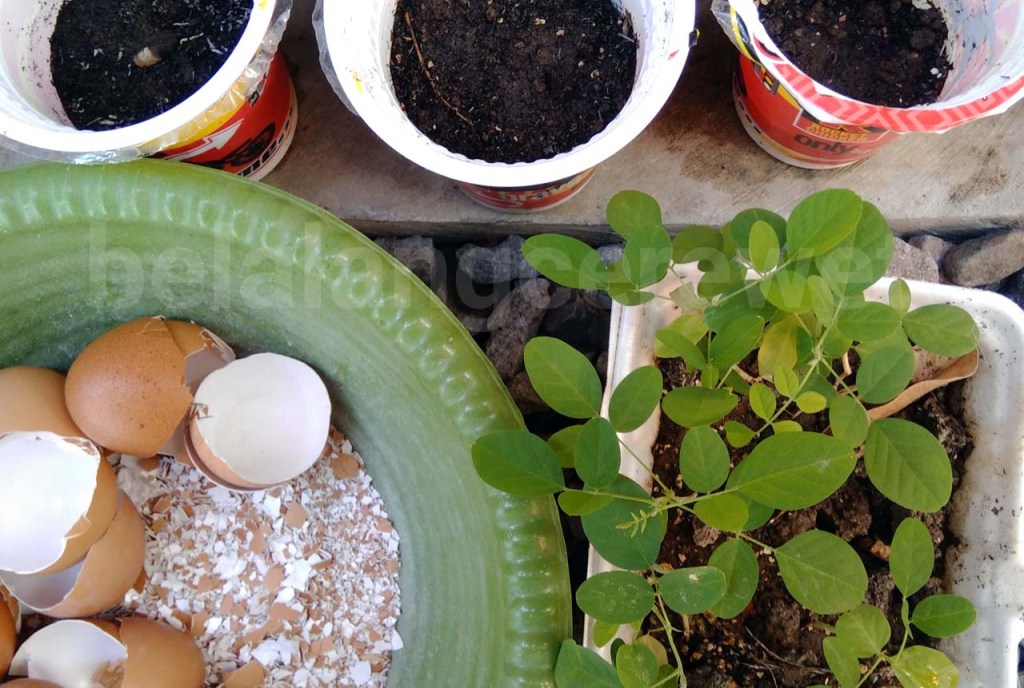 Kulit atau cangkang telur selama ini kami manfaatkan sebagai penyubur tanaman, baik dicampur saat menyiapkan media tanam maupun ditambahkan ketika tanaman sudah tumbuh. Caranya sangat sederhana: cangkang dicuci bersih lalu dikeringkan. Setelah itu cangkang telur dihancurkan selembut mungkin agar mudah bersatu dalam tanah.
