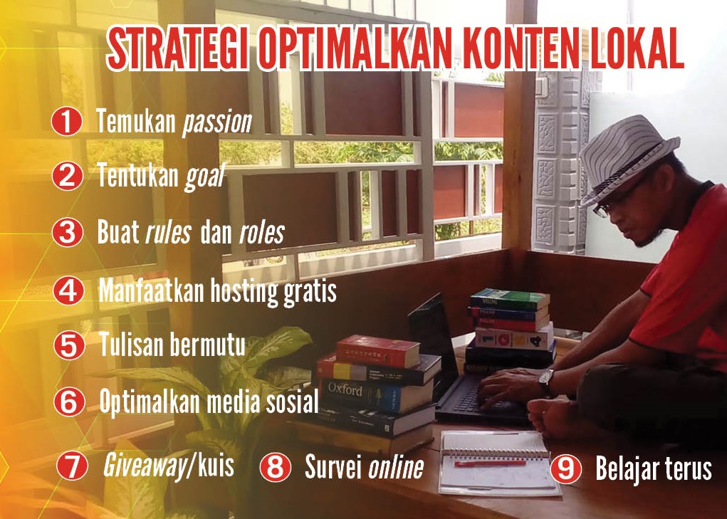 Maka tak ada lagi alasan untuk tak punya blog atau website di era serbadigital saat ini sebab itu bisa kita manfaatkan sebagai media ampuh untuk mengabadikan, memperbanyak, dan menyebarkan konten lokal yang tidak dimiliki oleh budaya lain, baik bangsa kita sendiri maupun bangsa asing. Biaya bukan lagi kendala, tapi niat dan semangat belajarlah yang utama.