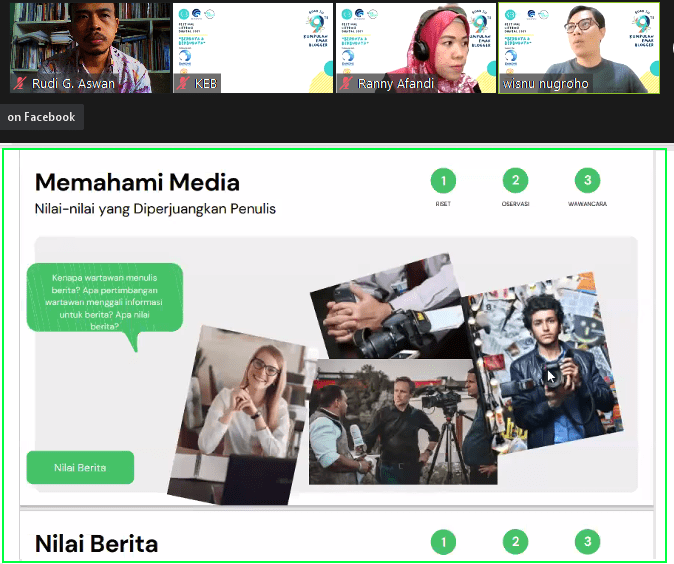 Saya pun bersiap di depan laptop menjelang pukul 1 siang untuk mendengarkan Wisnu Nugroho berbicara dalam Kelas Blogging bertema “Curi Perhatian Pembaca dengan Storytelling yang Persuasif”. Pemimpin redaksi Kompas.com itu membuka presentasinya dengan menuturkan sepenggal pengalaman saat menghadiri Asian Media Forum di Singapura di penghujung 2019 silam.