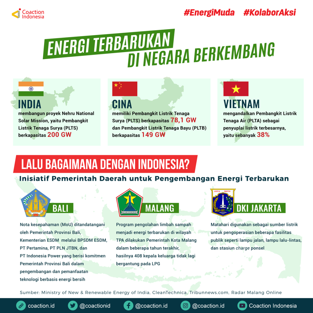 Inisiatif pemerintah daerah Bali, Malang, dan Jakarta bisa menjadi contoh nyata betapa energi terbarukan bisa diwujudkan dengan dukungan seluruh pemangku kepentingan. Keputusan ini pada awalnya mungkin menuntut biaya besar tapi berdampak signifikan pada pembangunan berkelanjutan, terutama manfaat yang bisa dirasakan bagi masyarakat.