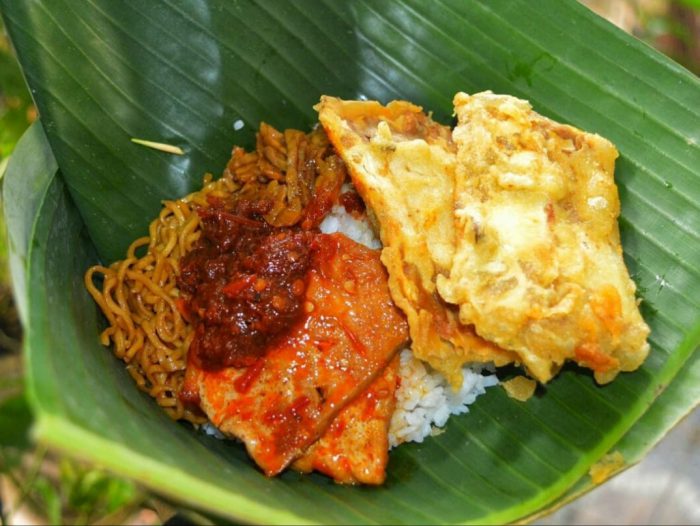 Nasi jotos khas madiun biasanya terdiri dari nasi putih, ditambah lauk kering seperti mi goreng dan sayuran sederhana plus telur dadar. Namun di beberapa kedai biasanya ditambah lauk lain seperti tahu atau tempe goreng. Nah yang khas dari nasji jotos adalah sambalnya yang enak banget. Pedasnya dijamin bikin kita ndromos aias berkeringat setelah menyantapnya.