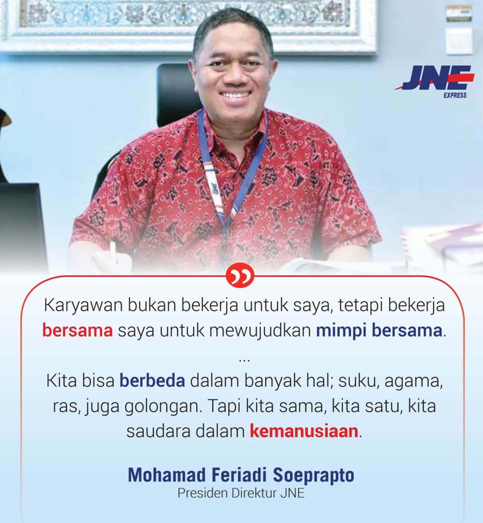 Sepenggal kisah itu sejalan dengan kebijakan JNE yang berkomitmen untuk memakmurkan seluruh pegawainya. Walaupun founder Soeprapto Suparno dan co-founder Djohari Zein beragama Islam, tapi perlakukan dan penghargaan untuk semua karyawan tidak pernah dibeda-bedakan menurut suku, agama, ras atau golongan.