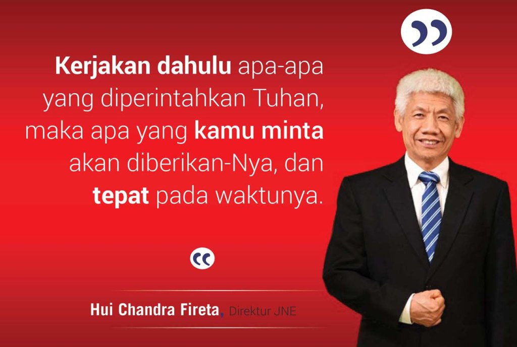 Edi yang berasal dari Magetan menuturkan bahwa selain spirit berbagi, memberi, dan menyantuni kunci kesuksesan JNE terletak pada pelayanan yang cepat dan aman serta komitmen menjaga kepercayaan dan kepuasan pelanggan.