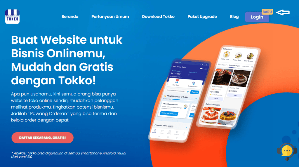 - Pastikan sudah melakukan Download TOKKO pada Play Store atau kunjungi https://tokko.co.id/ untuk membuka toko melalui komputer PC. Jika sudah terbuka, klik Baru untuk membuat akun baru.