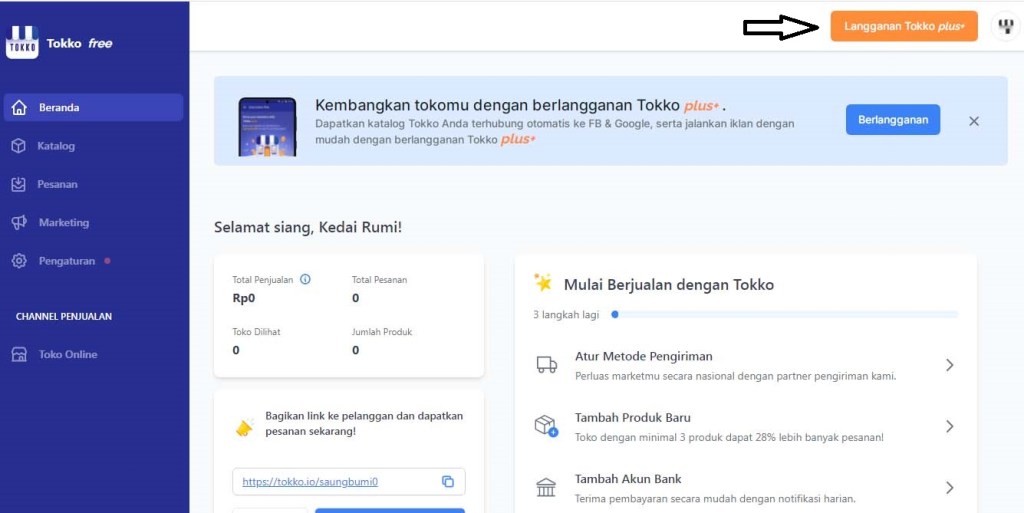 - Klik Langganan Tokko plus+ yang ada di sebelah kanan atas.