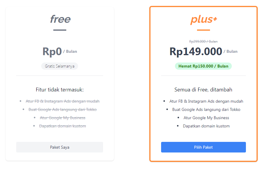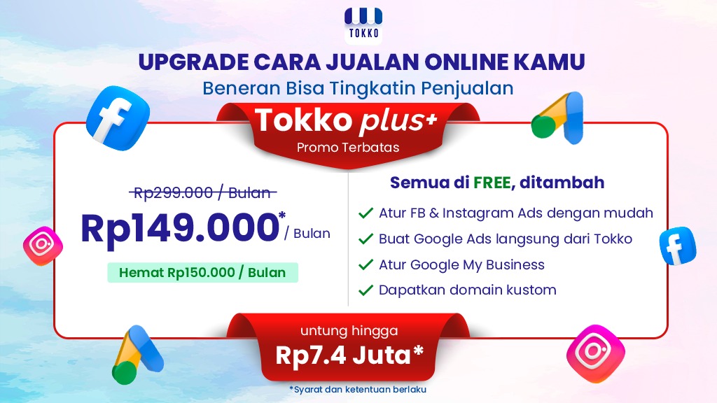 Bukan itu saja, Tokko juga akan meluncurkan fitur baru dalam waktu dekat seperti kustomisasi domain sehingga alamat toko kita semakin istimewa dan terpercaya. Ada juga promo berupa kupon reguler dan cashback pembelian marketing ads sebesar 100% untuk bulan pertama dan 50% untuk bulan berikutnya. Intinya, semakin banyak upaya pemasaran yang kita lakukan, maka peluang closing penjualan akan semakin besar. Dan itu bisa dicapai dengan memanfaatkan langganan TOKKO Plus.