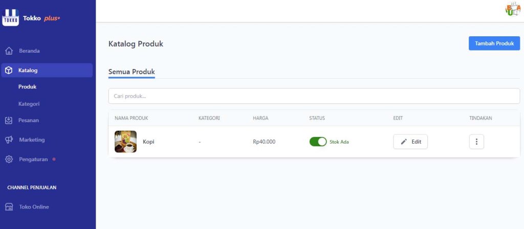 - Tambahkan produk yang akan kita jual di TOKKO. Saya tentu saja menambahkan kopi jola-joli untuk memajukan petani kopi lokal yang tidak punya pasar.