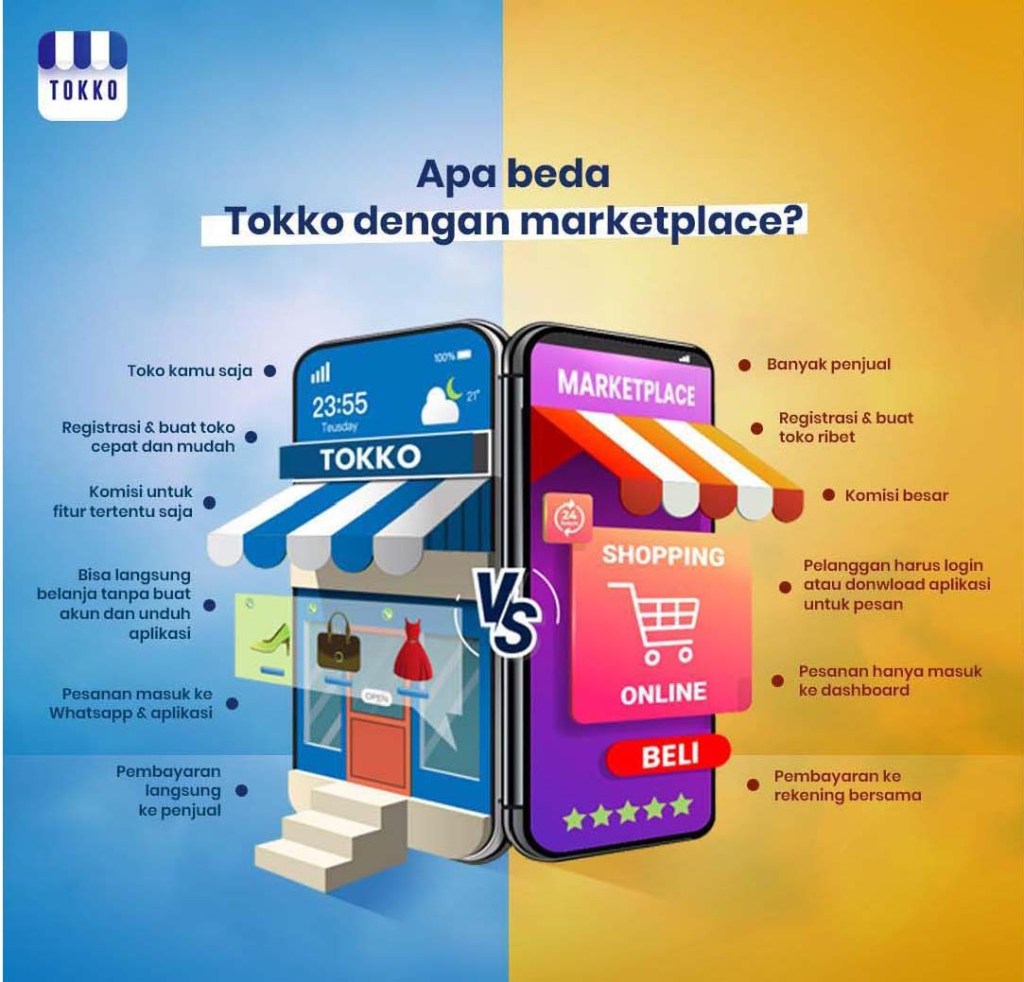 Berbeda dengan TOKKO karena hanya toko kitalah yang kita perkenalkan dan kelola. Ini sangat memudahkan bagi UKM atau UMKM untuk memiliki website jualan online sendiri tanpa dipusingkan pendaftaran ribet atau persaingan dengan ratusan toko sebagaimana di lokapasar (marketplace). Bukan cuma itu, TOKKO: