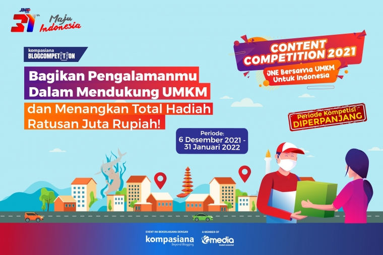 Bukan karena hadiah total hingga ratusan juta rupiah yang dibawa pulang, tapi juga kategori lomba yang cukup beragam. Syaratnya mudah kok, cukup tulis cerita terbaikmu sesuai tema lalu unggah di Kompasiana. Belum punya akun di sana? Cuss bikin atuh sekarang juga! Yakin nih enggak mau hadiahnya sekalian bantu promosi UMKM daerah?