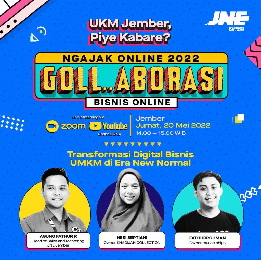 Itulah sebabnya JNE menggelar Goll…Aborasi Bisnis Online 2022 sebagai bentuk dukungan untuk para pelaku UMKM di Kota Jember agar tetap bersemangat menjalankan usaha pascapandemi. Lewat acara daring ini JNE memberikan edukasi bagi para pegiat UMKM di Jember dengan tujuan memperkuat branding usaha sehingga penjualan bisa optimal.