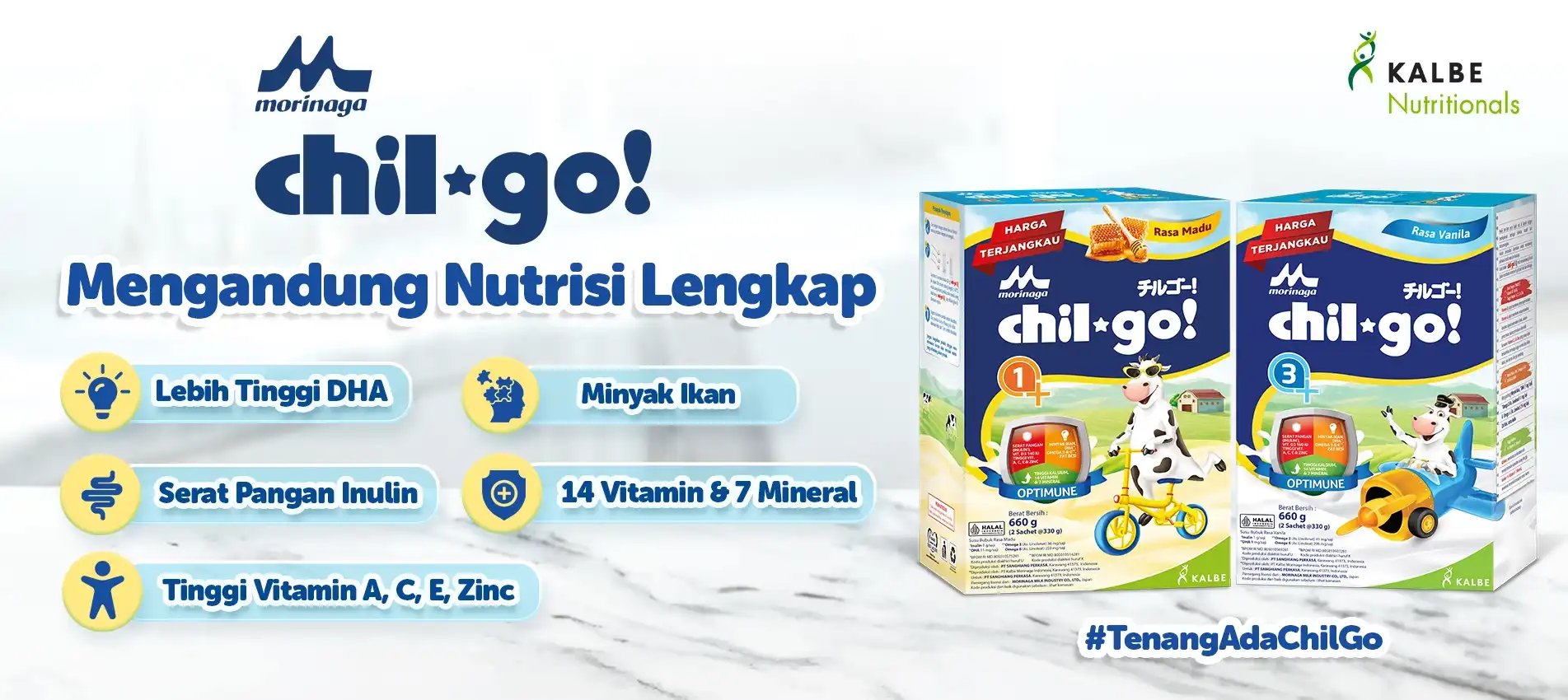 Namun, jangan khawatir! Ada berbagai cara yang dapat membantu meningkatkan nafsu makan anak, salah satunya adalah dengan memberikan Susu Morinaga Chil*Go! 1+, susu kualitas Morinaga Jepang yang enak dan bernutrisi untuk memastikan mereka tetap mendapatkan nutrisi yang diperlukan. Dengan pendekatan yang tepat, Anda bisa membantu anak Anda melewati fase sulit ini dan mendukung pertumbuhan mereka secara optimal.