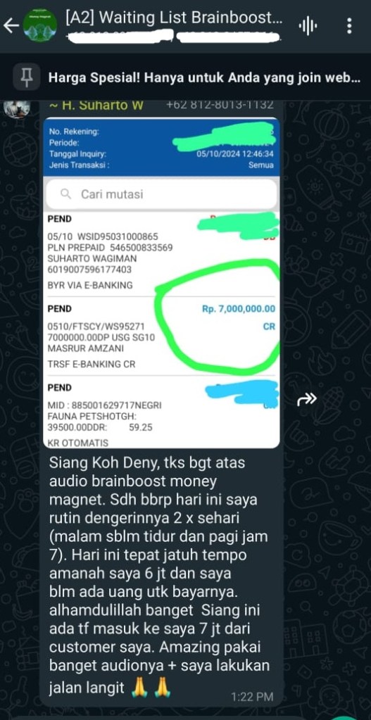 Kalau teman-teman BBC-Mania sedang dirundung masalah, apa pun itu, terutama masalah ekonomi, coba deh dengarkan Brainboost Money Magnet biar mendapatkan manfaat theta wave yang menenangkan. Biar bisa mengendalikan rasa cemas dan mencari solusi dari kesulitan keuangan. Seperti pengguna lain berikut ini.