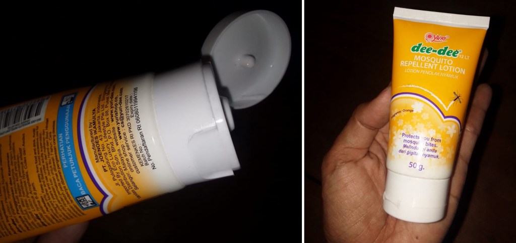 Losion penolak nyamuk dee-dee dari Yuri betul bisa diandalkan untuk berkegiatan luar, termasuk baca buku di kebun/sawah atau mungkin berkemah di alam terbuka. Dengan kandungan 12% Diethyl toluamide, lotion ini ampuh bukan cuma untuk mengusir nyamuk tetapi juga serangga lain seperti lalat dan bahkan tungau.